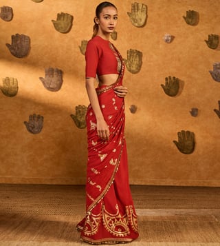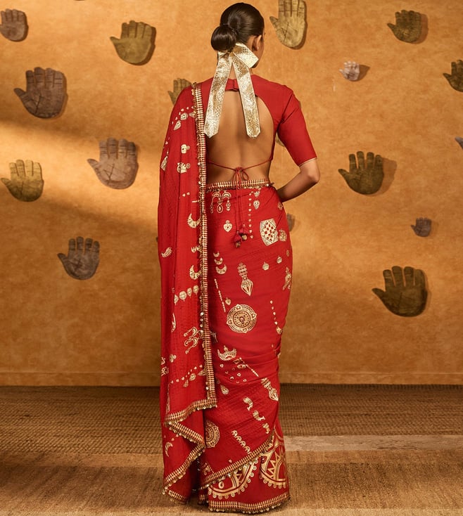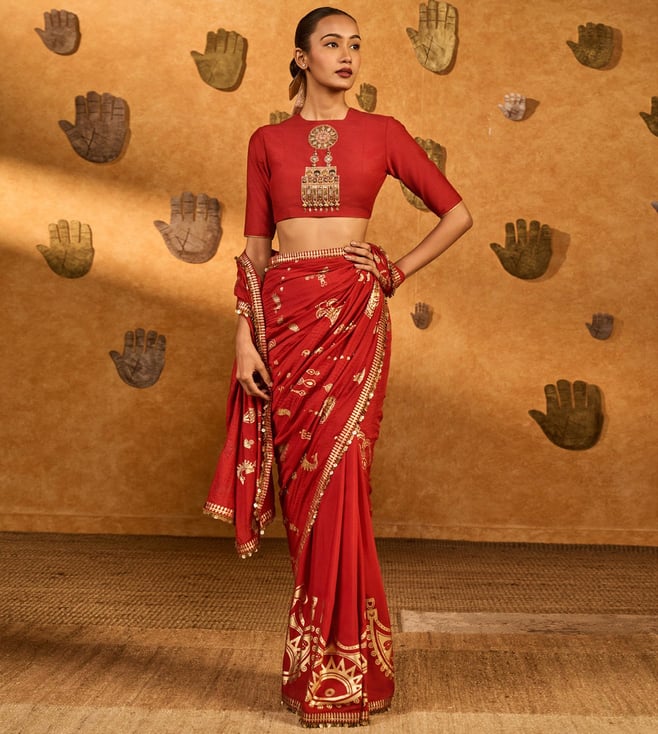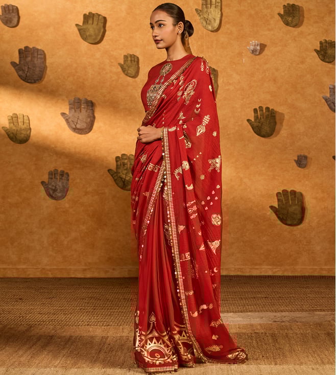 Explore the vibrant Masaba Red Mul Silk Regular Fit Saree Perfect for any occasion, this stylish and comfortable dress showcases a colorful blend in soft cotton. Disclaimer: All other items in the image are only for display purposes and will not be a part of the delivery content. Product colour may slightly vary due to photographic lighting sources. Country of Origin - India.