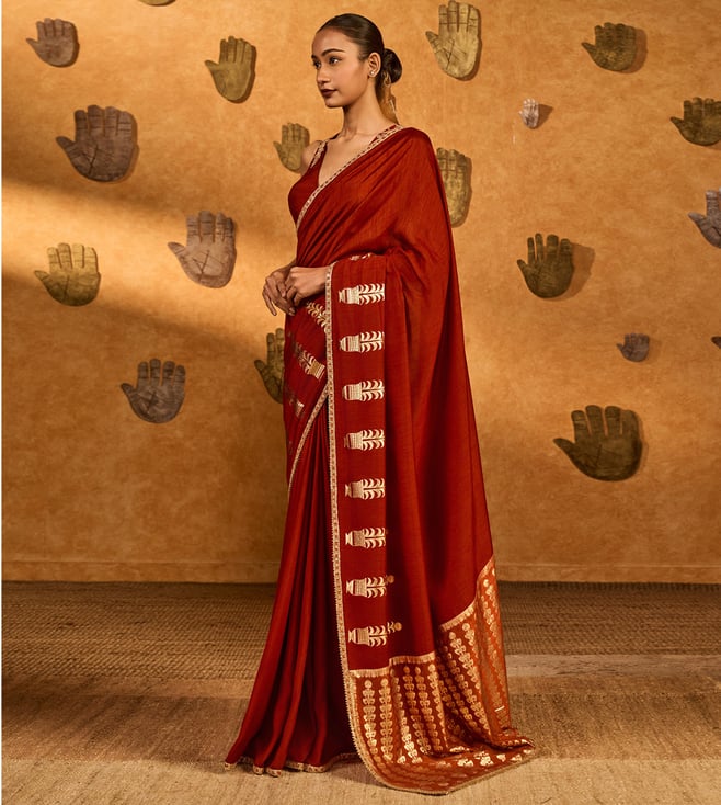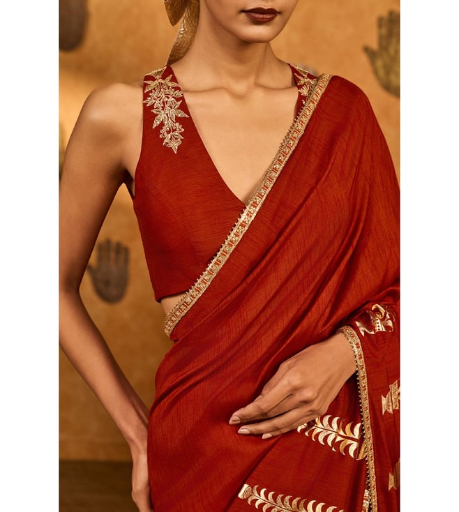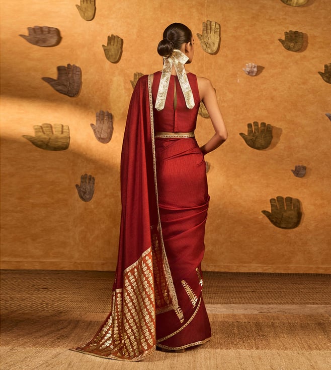 Discover the Crafted from luxurious satin, Masaba Red Raw Silk Regular Fit Saree this dress offers elegance and versatility in vibrant hues. Disclaimer: All other items in the image are only for display purposes and will not be a part of the delivery content. Product colour may slightly vary due to photographic lighting sources. Country of Origin - India.