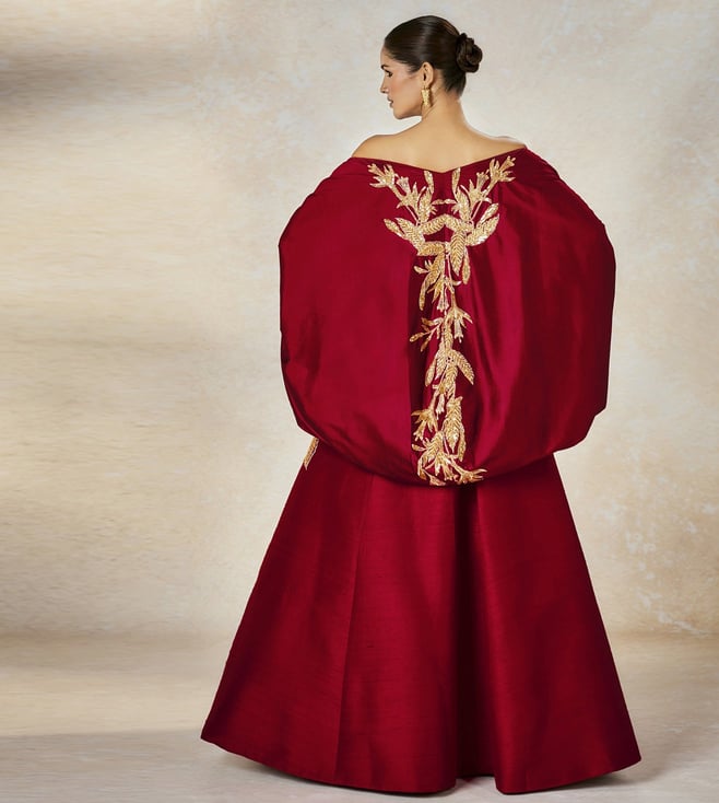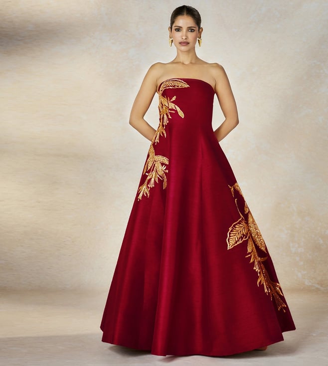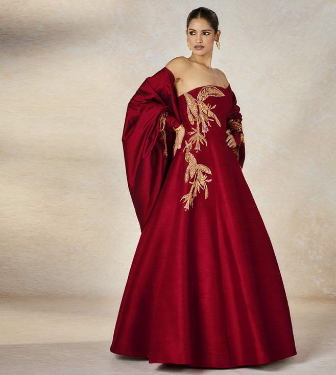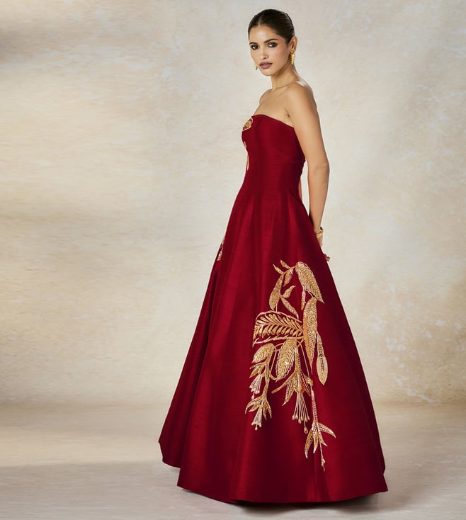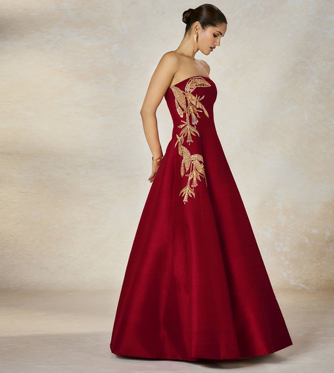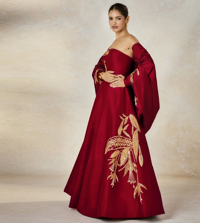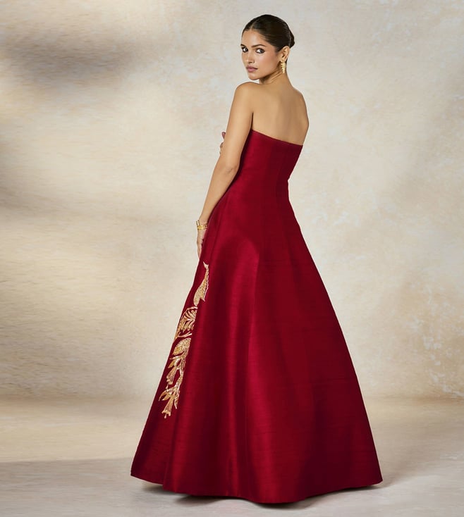 Masaba Red Heavy Raw Silk Semi-Fitted Gown