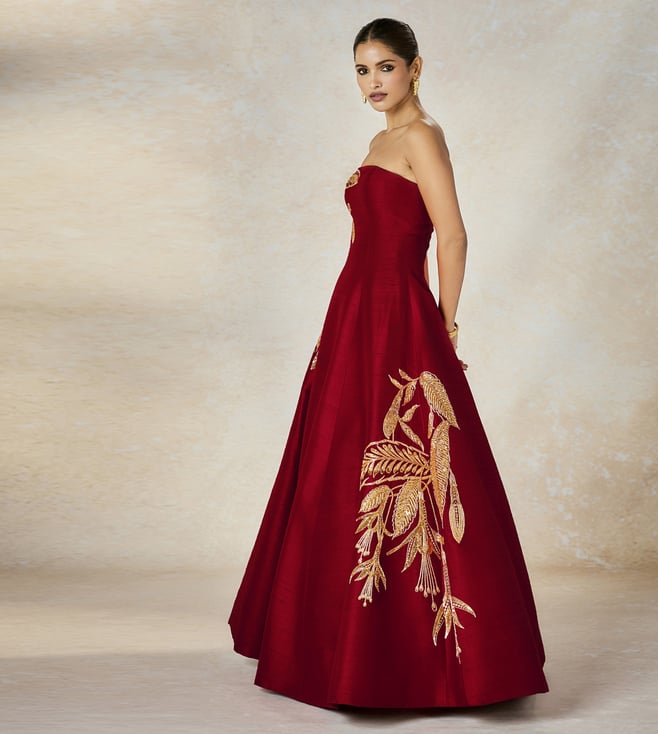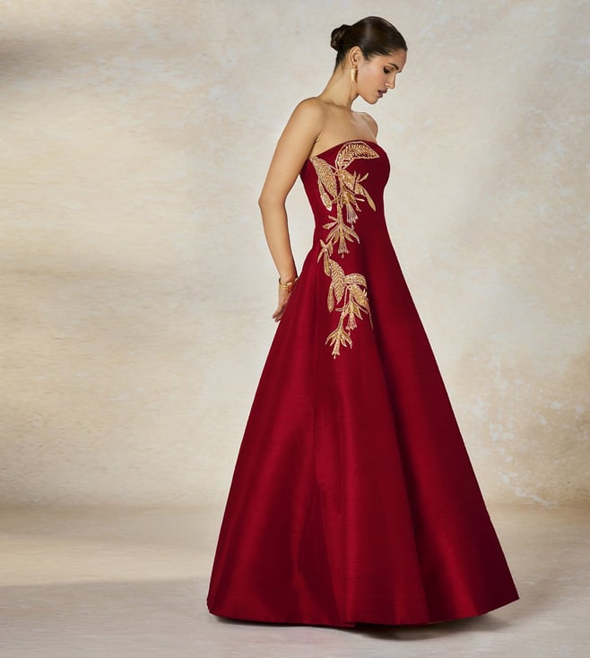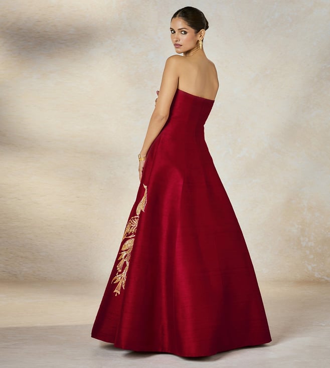 Masaba Red Heavy Raw Silk Semi-Fitted Gown