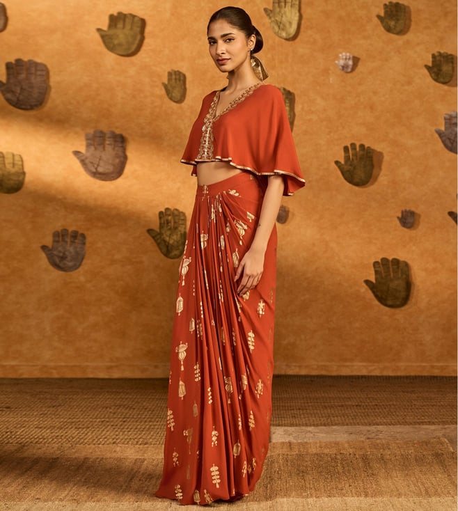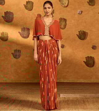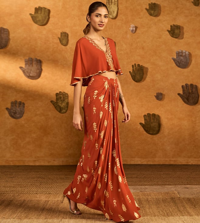 Elevate your style with the Designed for women, Masaba Rust Crepe Silk Relaxed Fit Co-Ord Set this vibrant piece combines comfort and elegance. Disclaimer: All other items in the image are only for display purposes and will not be a part of the delivery content. Product colour may slightly vary due to photographic lighting sources. Country of Origin - India.