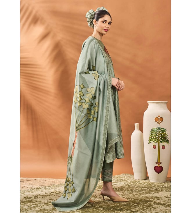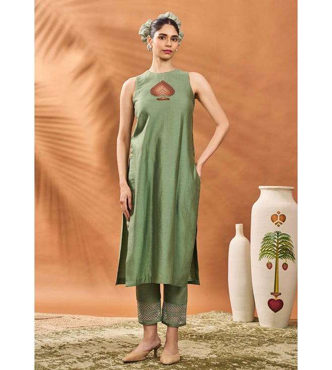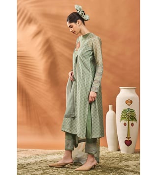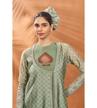 Sage Green Tree Of Hearts Angrakha Kurta Set