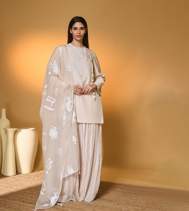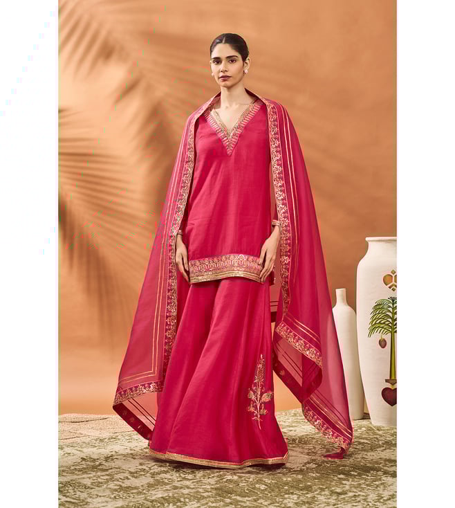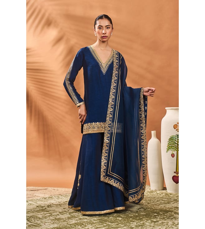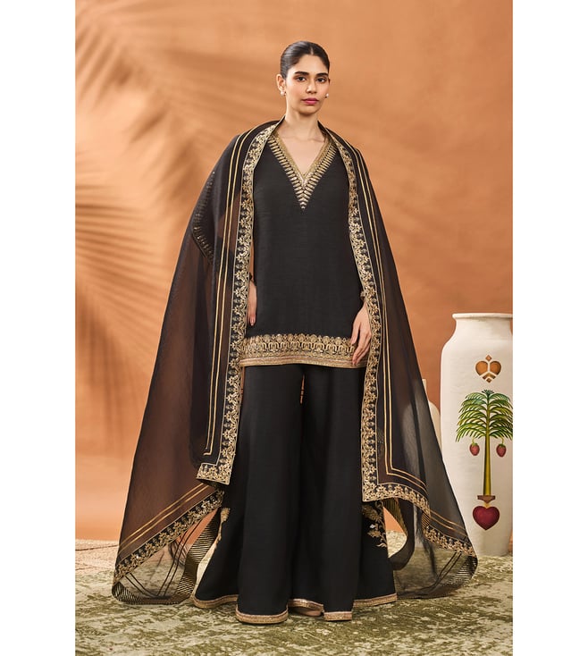 Black Whispering Lily Sharara Set Tunic with Sharara and Dupatta