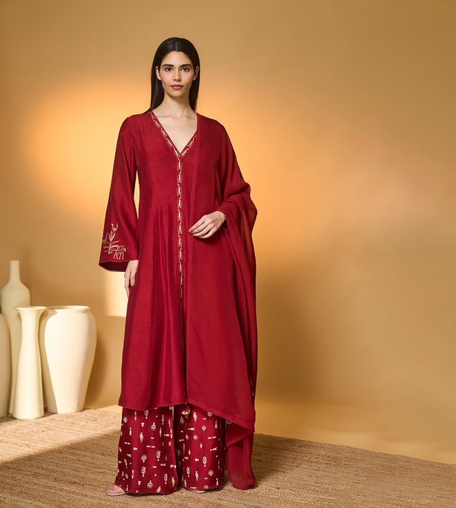 Purple Viscose Raw Silk Semi Fitted Fusion Set
