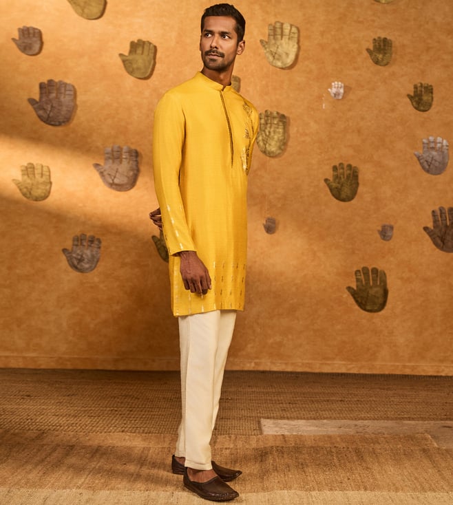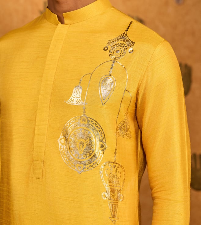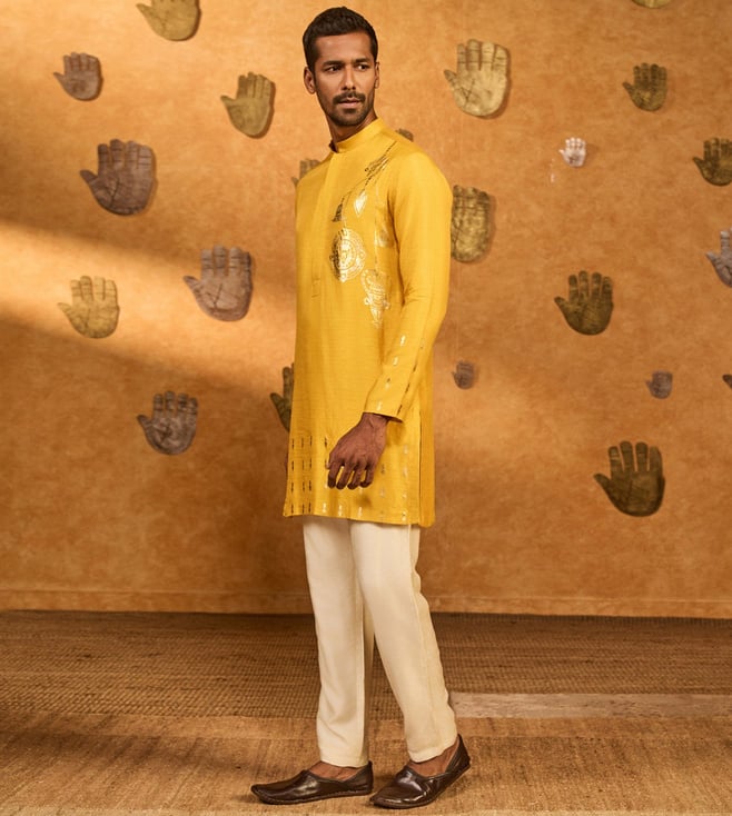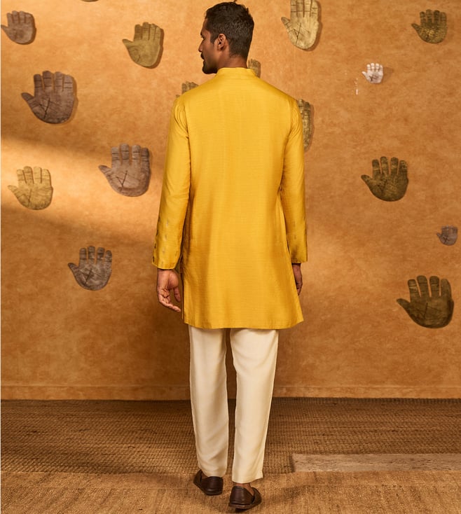 The Masaba Spiced Ochre Raw Silk Relaxed Fit Kurta Set This women's dress combines traditional fabric with vibrant colors for a unique style. Disclaimer: All other items in the image are only for display purposes and will not be a part of the delivery content. Product colour may slightly vary due to photographic lighting sources. Country of Origin - India.