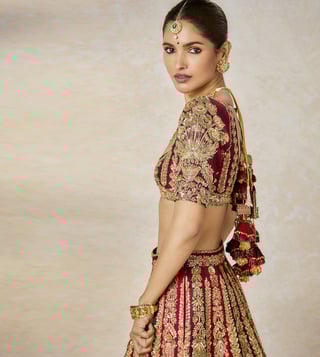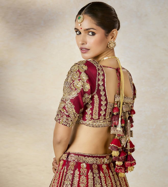 Masaba Wine Heavy Raw Silk Semi Fitted Lehenga Set