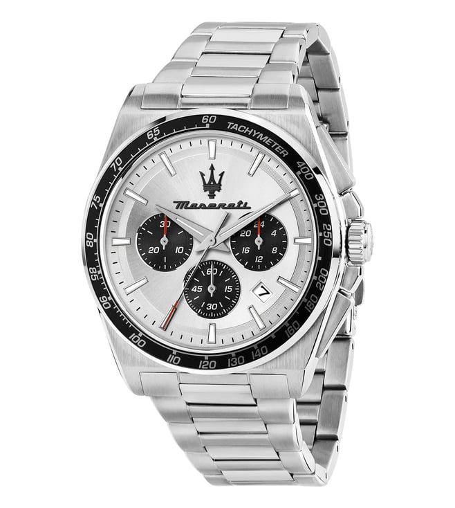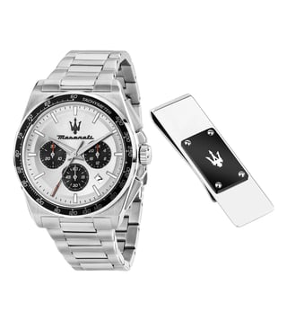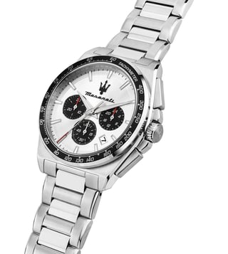 Elevate your style with the MASERATI Velocita Quartz Chronograph Men's Watch. This 43mm timepiece exudes sophistication and luxury, perfect for the modern man on the go. With precise quartz movement and a sleek design, this watch is not only a fashion statement but also a functional accessory. The chronograph feature adds a touch of sporty elegance, making it versatile for any occasion. Make a statement with the MASERATI Velocita and stand out from the crowd.