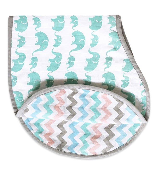 Green Organic Muslin Burp Cloth & Bib (Pack of 2) - Toucan & Elephant