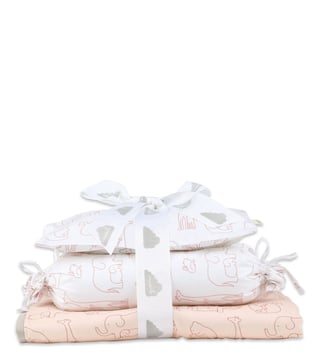 Welcome the little one home in grand style! This gift set features irresistibly soft sleep essentials made with bamboo muslin - just what every baby needs to drift off into dreamland! Product Content: 1 x Pillow (insert included) 2 x Bolsters (insert included) 1 x Dohar (42 x 42") Organza gift sack and ribbon packaging included.