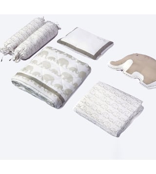 This cot bedding collection from Masilo feature adorable characters, signature prints and super soft organic cotton Indian fabrics that add just the right amount of comfort and playfulness to your baby's nursery. Safety Measures - Avoid placing any loose items in the cot while your baby is sleeping unattended and remember to tuck blankets in securely. Product Content: 1 x Pillow, 2 x Bolsters, 1 x Quilted Blanket (42 x 42"), 1 x Fitted Cot Sheet*, 1 x Shape Cushion