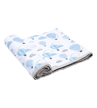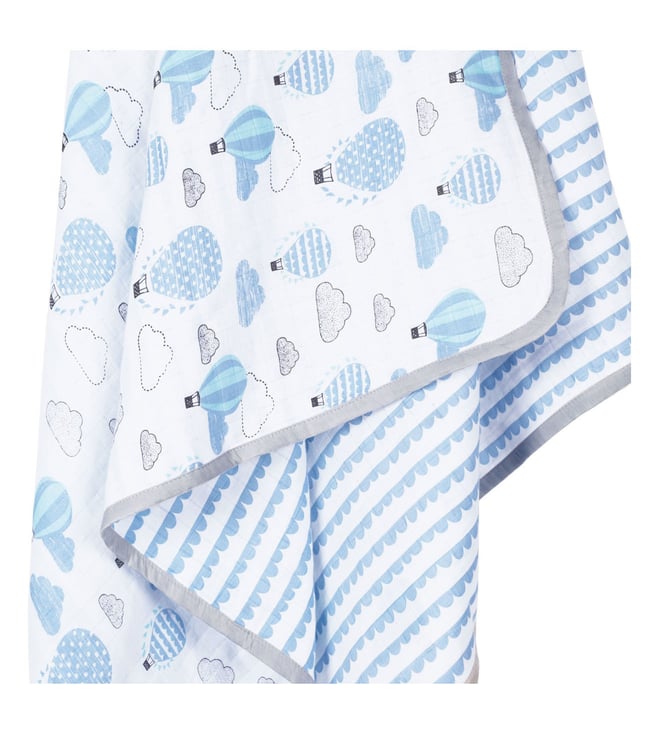 MASILO Organic Muslin Stroller Blanket - Up, Up & Away (Blue)