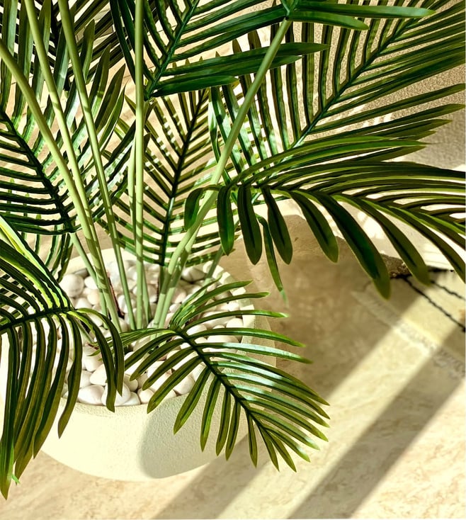Bring a touch of tropical elegance to any space with this artificial lush areca palm. Featuring dense, lifelike fronds this PVC artificial palm is designed to mimic the beauty of a real areca palm while remaining completely maintenance-free. This versatile plant is perfect for homes, offices or event decor. Whether you're looking to fill a corner or add a striking focal point, it provides year-round greenery with no upkeep. Disclaimer: Product colour may slightly vary due to photographic lighting sources. Country of Origin - India.