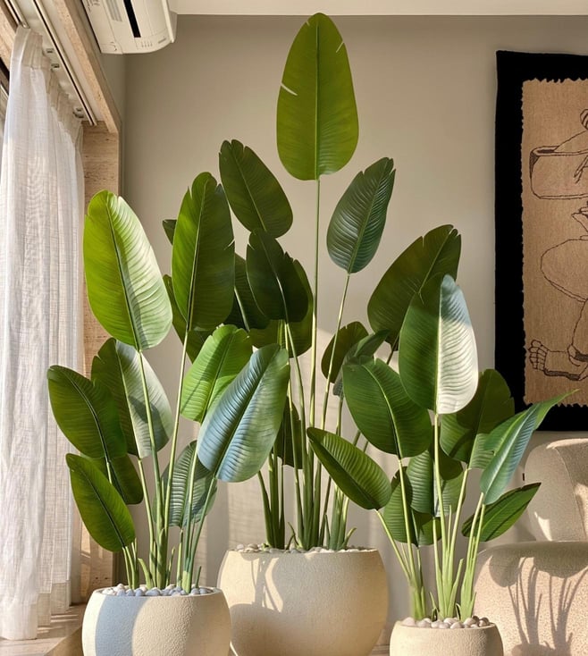 Bring a refreshing tropical vibe into your home with the Artificial Cavendish Banana Plant, a stunning decorative piece designed to transform your interiors effortlessly. Made from high-quality PVC, this lifelike plant mimics the vibrant green leaves and sturdy stems of a real banana plant, making it a perfect addition to indoor decorative plants and planters. Whether placed in elegant plants with pots, a stylish corner, or as part of your living room decor ideas, this artificial plant adds a bold and refreshing look to any space without the need for watering or sunlight!
