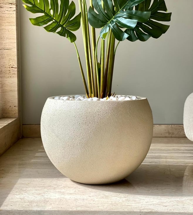 Enhance your living space with the stunning Lithos Beige Planter, expertly crafted from high-quality fiberglass. This elegant planter is designed to add a touch of sophistication to any home decor style, making it the perfect accent for your indoor or outdoor garden. Its smooth ivory finish complements a variety of plants, bringing a fresh, modern aesthetic to your environment.