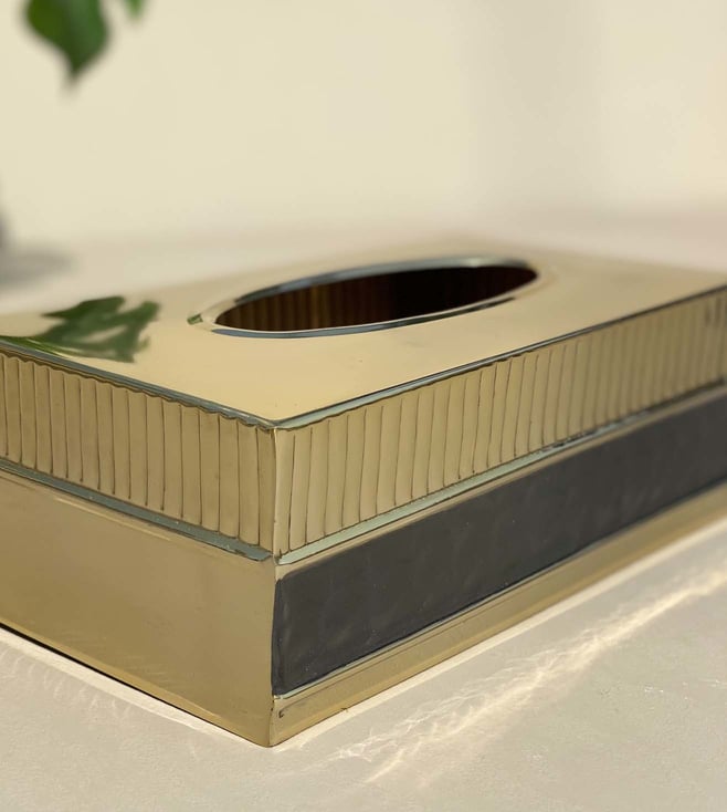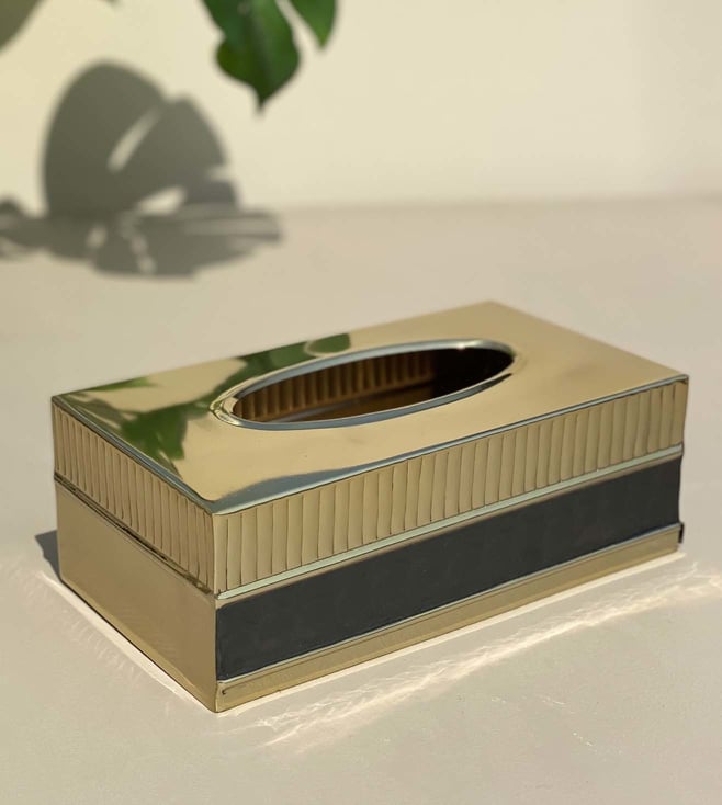 Add a decorative touch to your bathroom vanity, dresser, nightstand or side table with this tissue box. It fits the standard-sized rectangular tissue boxes. The wide opening on the top is large enough to make grabbing tissues easily while still hiding unsightly and coloured cardboard tissue boxes. The ornate design adds a decorative touch. It is made using steel.
