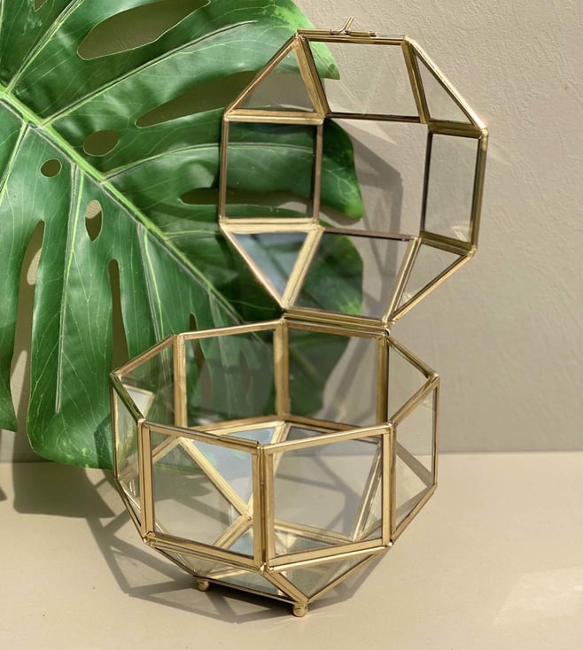 This lantern proves that simplicity is the ultimate sophistication. You can use this lantern as a candle holder or leave it as it is to add elegance to your space. It can also be considered as a housewarming gift to your loved ones. It is made using mirror and brass.