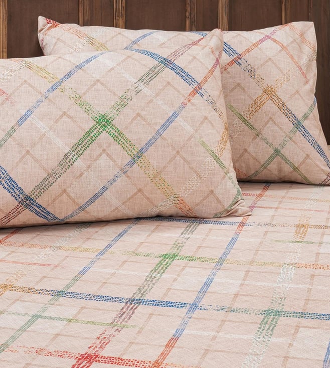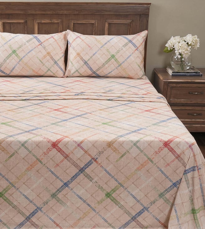 MASPAR Beige 100% Cotton Digital Print Bed Sheet Set 2 Pc