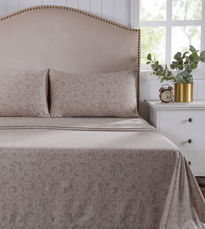 MASPAR Beige 100% Cotton Printed Bed Sheet Set 3 Pc