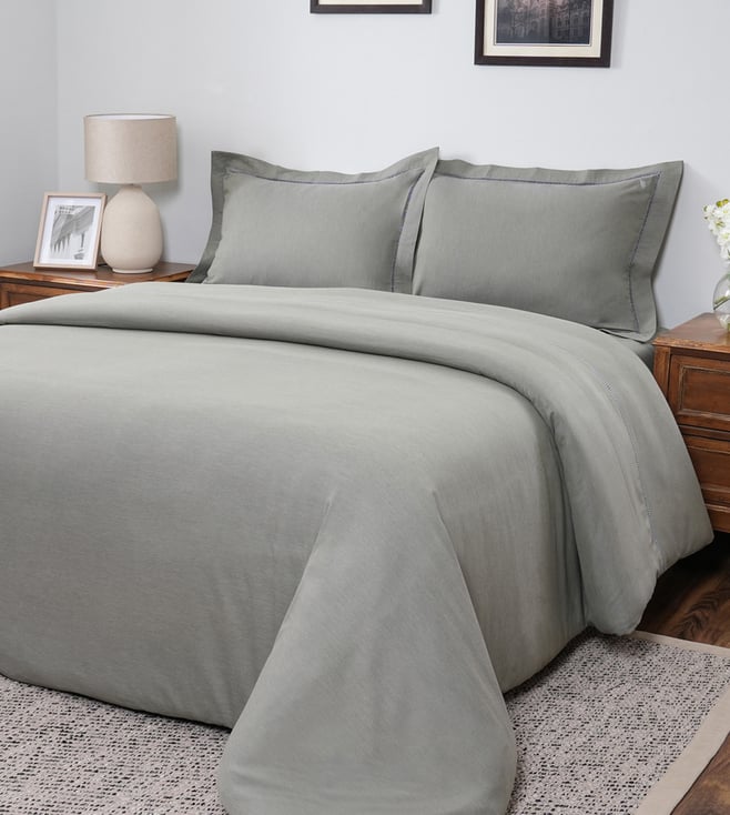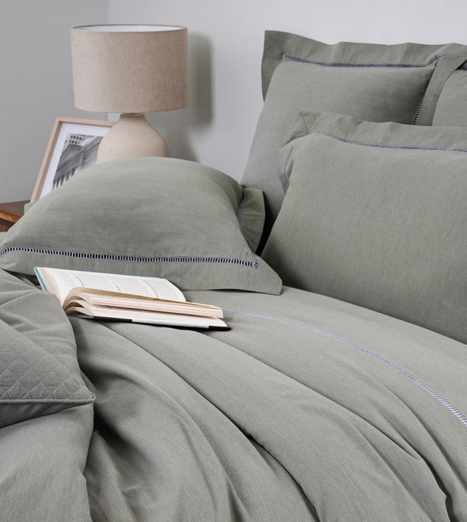 MASPAR Cotsmere Emmie Chameleon Green Yarn Dyed Melange Double Duvet Cover With Pillow Case