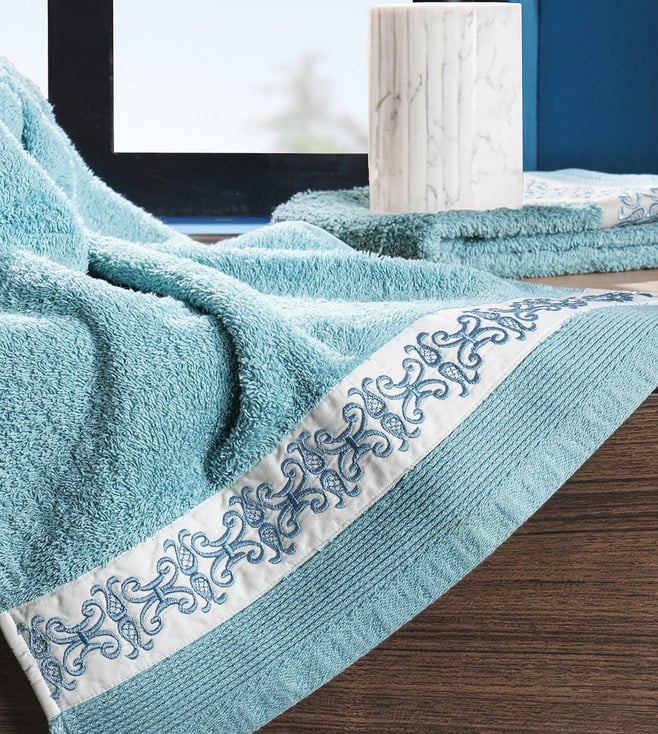 Blue 100% Cotton Embroidered Hand Towel Set of 2 Pc
