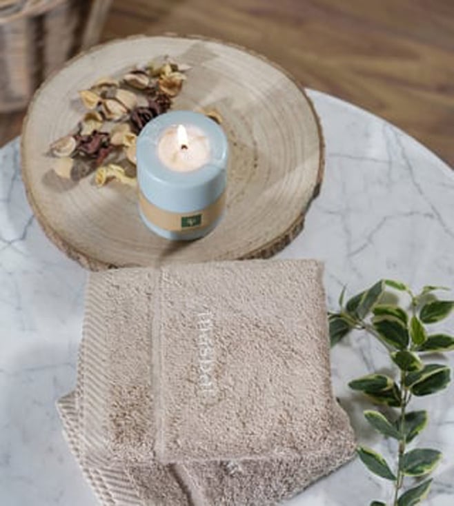 Beige Cotton Blend Solid Face Towel Set - Set Of 4