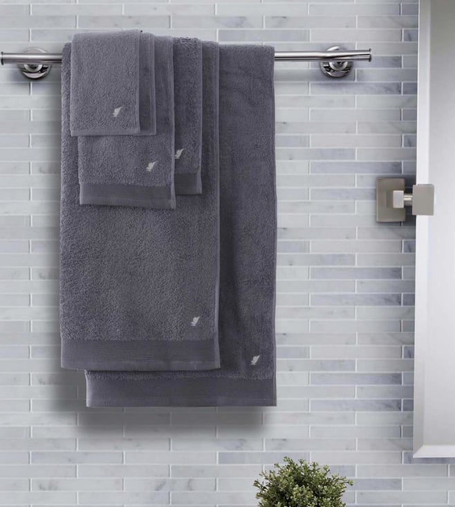 Grey 100% Cotton Solid Bath & Hand Towel Set of 3 Pc