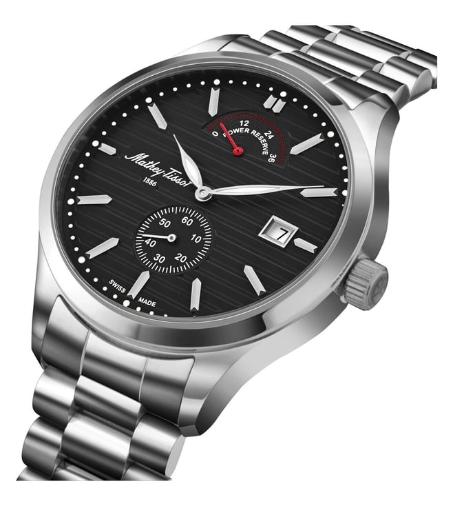 The Mathey Tissot Urban Power Reserve Auto Quartz Mens Watch H411ATPRAN is a perfect blend of Swiss craftsmanship and modern elegance. Designed in a 42 mm case, it features a refined dial with a power reserve indicator for enhanced functionality. The automatic quartz movement ensures precision, while the sleek design makes it ideal for both daily wear and formal occasions. A sophisticated timepiece for the contemporary gentleman.