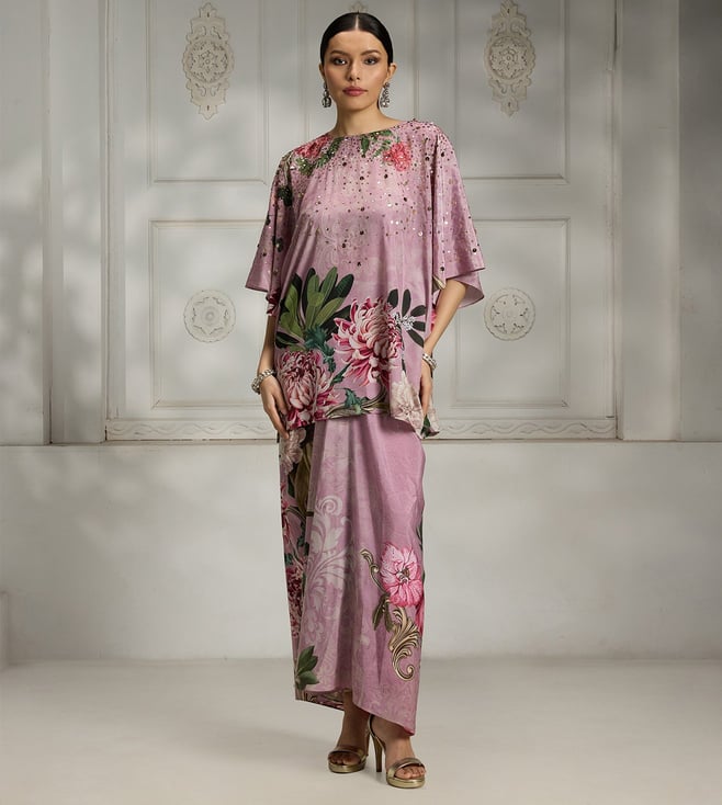 Pink and Ivory Festive Pret Floral Regular Fit High Low Shirt Tunic