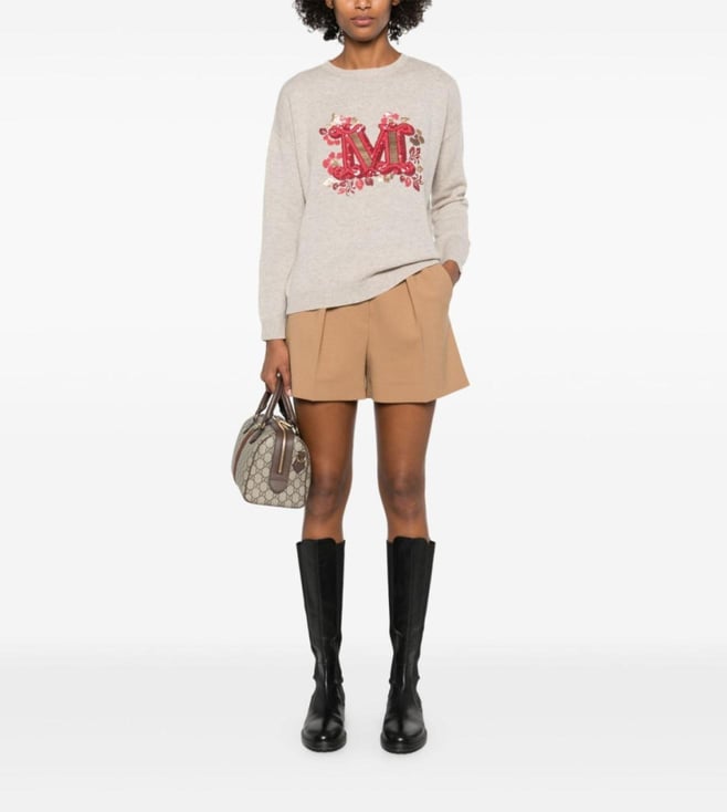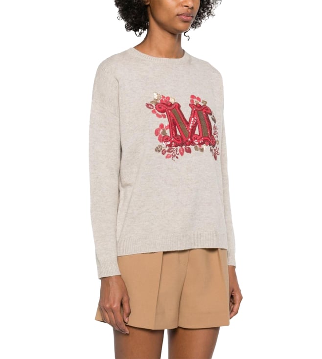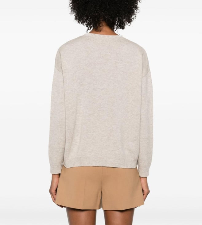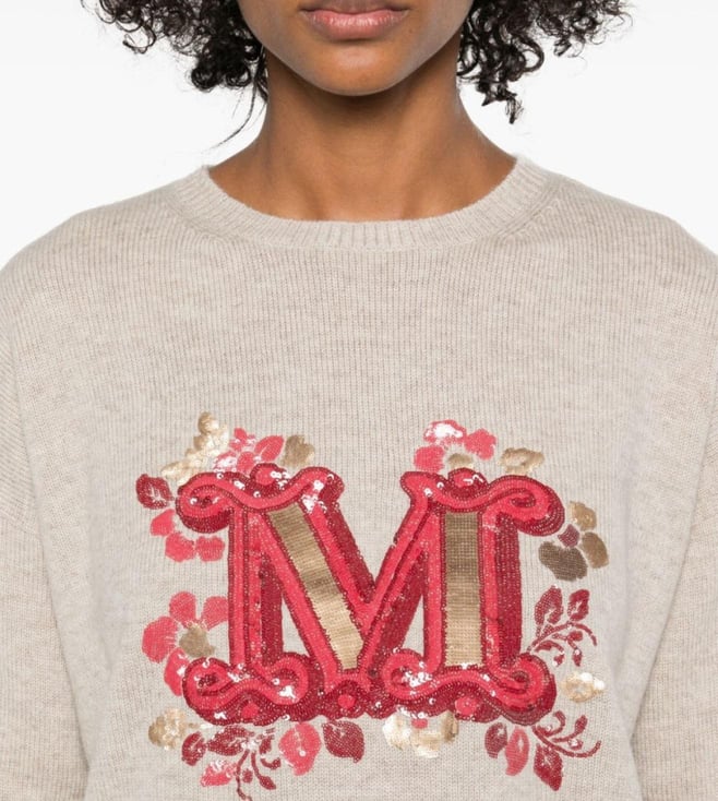 The Max Mara Beige Sequin-Embellished Sweater is a luxurious blend of elegance and comfort, crafted from premium wool fabric. This exquisite piece features a subtle yet captivating sequin pattern that shimmers with every movement, adding a touch of glamour to any ensemble. Designed for the modern woman, its soft beige hue complements a variety of styles, while the seamless closure ensures a sleek silhouette. Perfect for both day and night, this sweater is a timeless addition to any wardrobe.