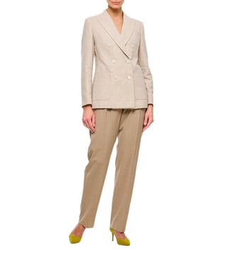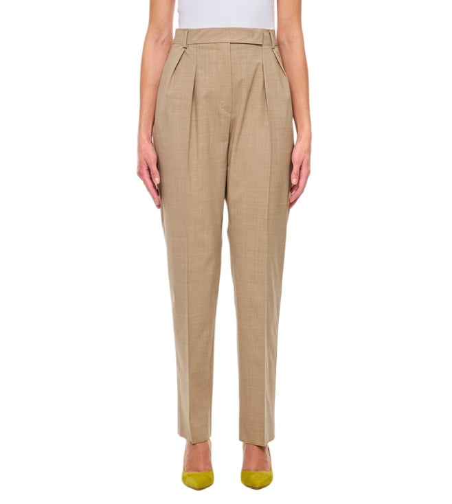 Elevate your wardrobe with the Max Mara Beige Slim Fit Trousers. Designed with stretch viscose blend double jersey trousers, featuring french pockets on the sides and a straight-line silhouette. closure with covered zip and small hook. color: beige, composition: 84% viscose, 11% polyamide, 5% elastane, country of origin: italy, these trousers combine comfort and sophistication for everyday wear.