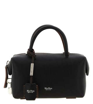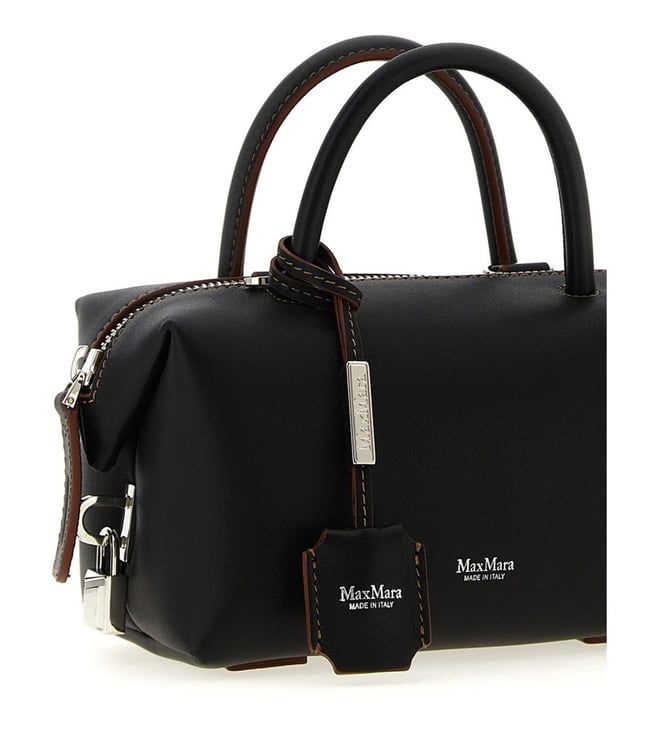Black Logo Small Duffle Bag Smooth Natural Calf Leather Top Case, Contrast Stitching, Folded M-shaped Sides With Magnet, Front Embossed Logo, Double Fixed Handle, Top Zip Closure With Side Metal Padlock Detail, Adjustable And Removable Shoulder Strap, 1 compartment, Removable Keyring. With its timeless design and practical features, this bag is a must-have accessory for the modern woman on-the-go.