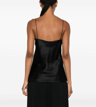 Elevate your wardrobe with the Max Mara Black Silk Tank Top, a masterpiece of elegance and simplicity. Crafted from 100% pure silk, this luxurious piece drapes effortlessly, offering a regular fit that flatters every silhouette. Its sleek black hue exudes timeless sophistication, while the minimalist design ensures versatility for any occasion. The discreet closure enhances its seamless look, making it a perfect choice for both day and night. Ideal for the modern woman who values style and comfort.