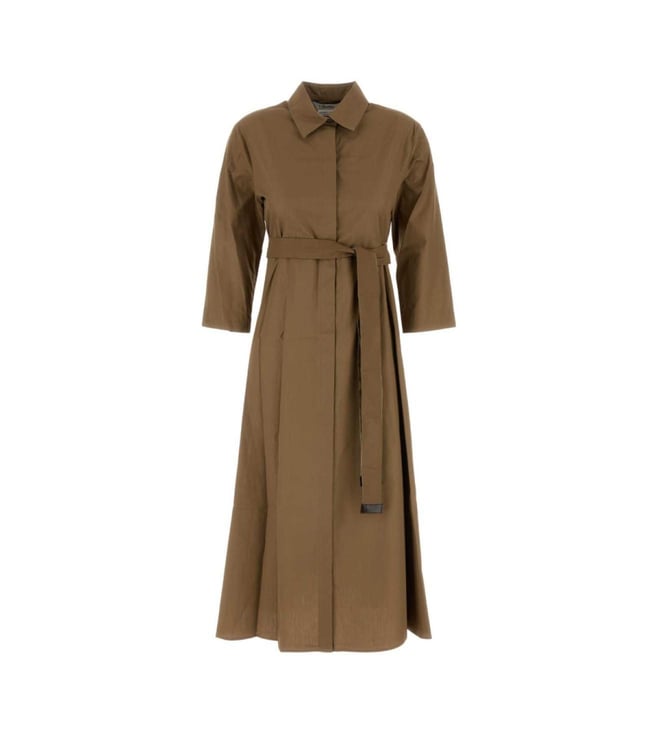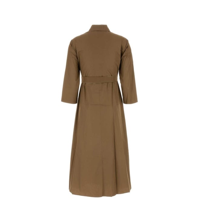 Embrace timeless elegance with this exquisite brown dress, crafted from 100% cotton for a soft, breathable feel. The solid hue exudes sophistication, while the three-quarter sleeves offer a versatile touch, perfect for any season. A classic shirt collar adds a hint of tailored refinement, seamlessly blending casual and chic. The dress features a discreet closure, ensuring a seamless silhouette. Ideal for both work and leisure, this piece is a wardrobe staple for the modern woman.