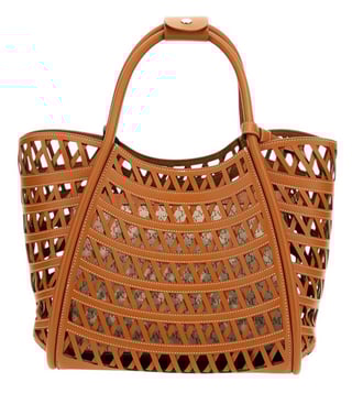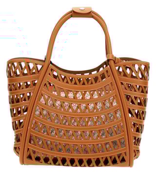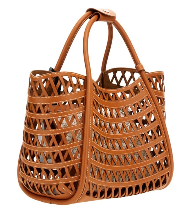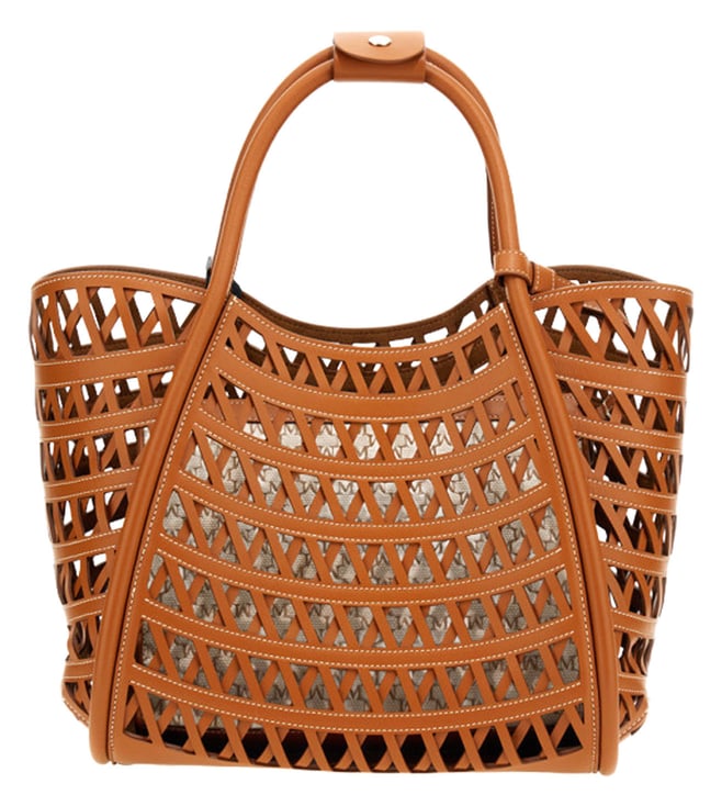 Expand the collection of your accessories in a trendy way with this bag from MAX MARA. Its versatile design complements any outfit, making it an essential for basic and casual activities. Browntwo rolled top handlesopen topmain compartmentremovable pouch Products purchased from Darveys are supported exclusively by the warranty/exchange policies of Darveys and its partner boutiques. Brand owners and their channel partners are not responsible for exchange/warranty services for items purchased through Darveys.