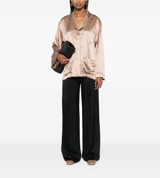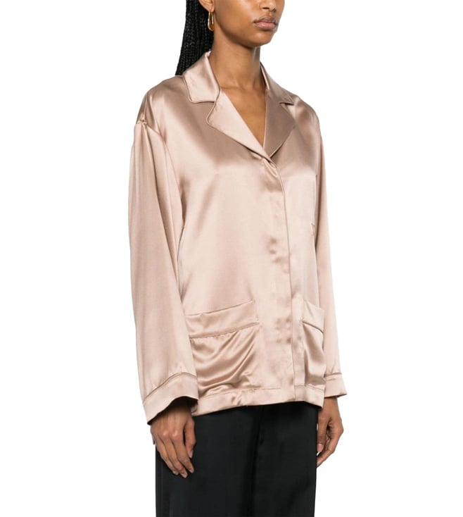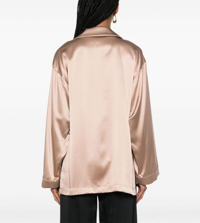 Elevate your wardrobe with this exquisite brown casual shirt, crafted from 100% pure silk for a luxurious feel. The solid pattern exudes timeless elegance, while the long sleeves offer a touch of sophistication. Designed with a classic lapel collar, this shirt seamlessly blends style and comfort. Its sleek closure ensures a perfect fit, making it an ideal choice for both casual outings and refined gatherings. Embrace effortless chic with this versatile piece, tailored for the modern woman.