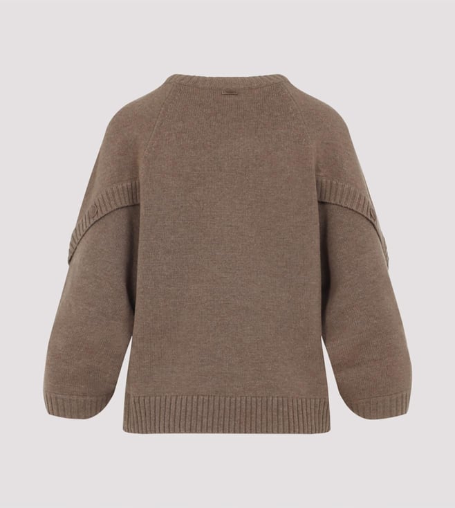 Wrap yourself in the timeless elegance of the Max Mara Brown Wool Sweater, a masterpiece of understated luxury. This exquisite piece, crafted from the finest wool, envelops you in warmth and sophistication. Its rich brown hue is complemented by a subtle, intricate pattern that adds depth and texture. Designed for the modern woman, this sweater features a seamless closure, ensuring a sleek silhouette. Perfect for any occasion, it effortlessly combines comfort with chic style, making it a wardrobe essential.