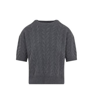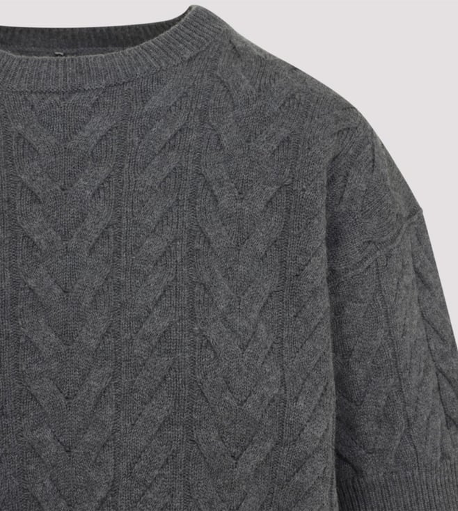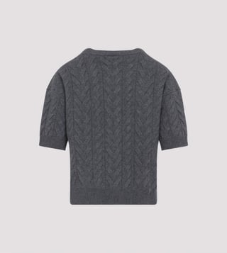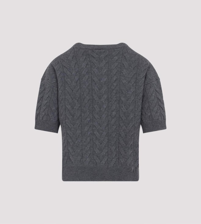 MAX MARA Grey Crewneck Wool Woven Design Pullover