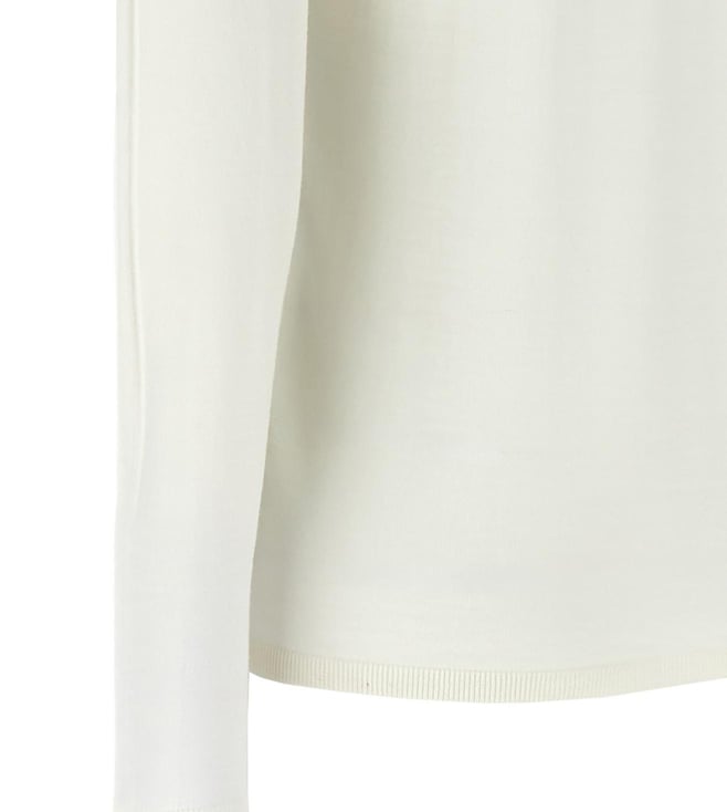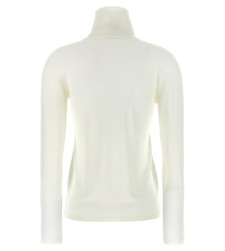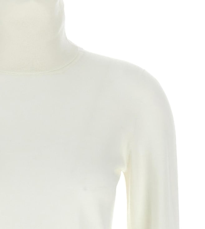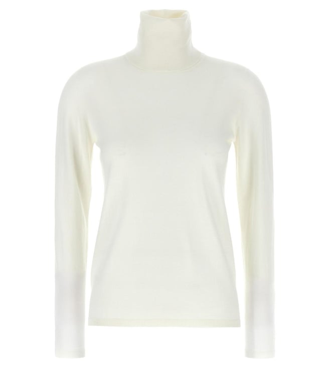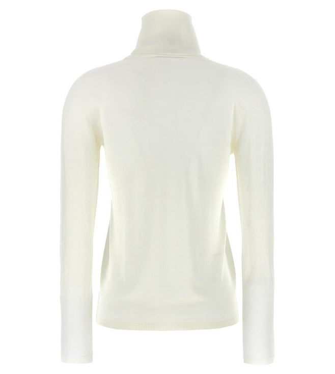 The Max Mara White Saluto Sweater is a luxurious embodiment of elegance and comfort, crafted from 100% wool. Its pristine white hue exudes timeless sophistication, while the intricate pattern adds a touch of artistic flair. Designed for the modern woman, this sweater features a seamless closure that enhances its sleek silhouette. Perfect for any occasion, the Saluto Sweater envelops you in warmth and style, making it a quintessential addition to your wardrobe.