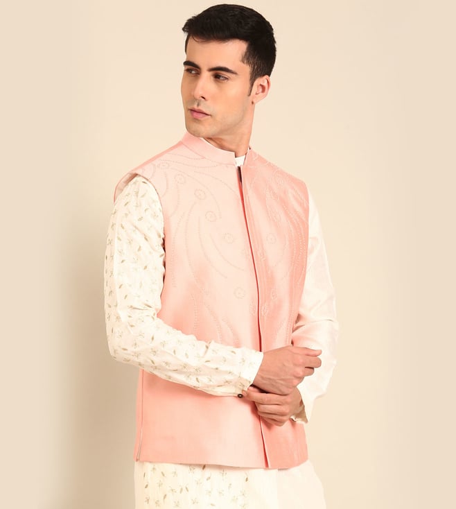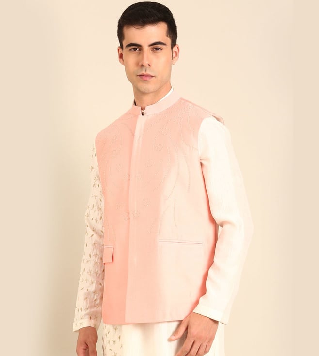 Mayank Modi Baby Pink Silk Cotton Regular Fit Jacket