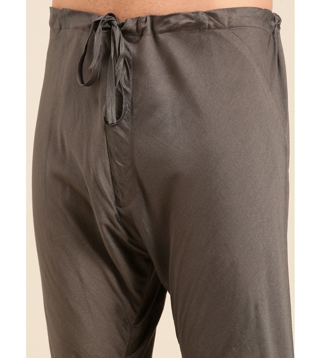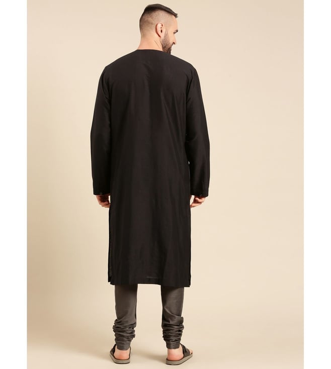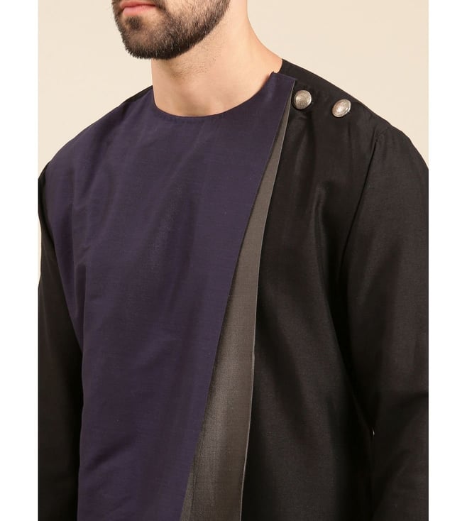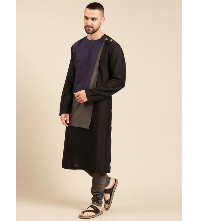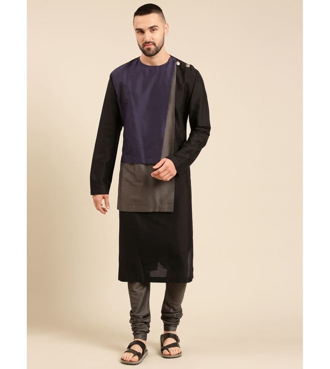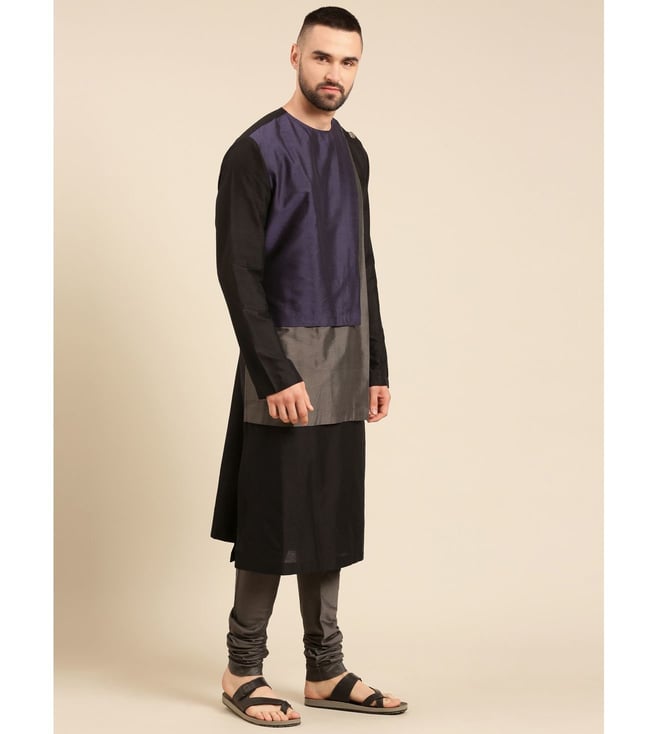 Mayank Modi Black, Charcoal & Blue Silk Cotton Kurta with Pyjama