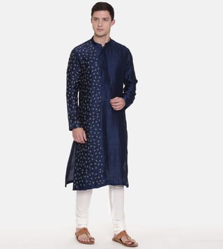Vaunt a new trend wearing this kurta set. This kurta set includes a kurta with embroidered detail. It has been paired with chudidar for a complete look. It has been crafted with care using a silk slub for a smooth touch on the skin. Disclaimer: Product colour may slightly vary due to photographic lighting sources. Country Of Origin - India.