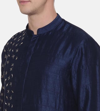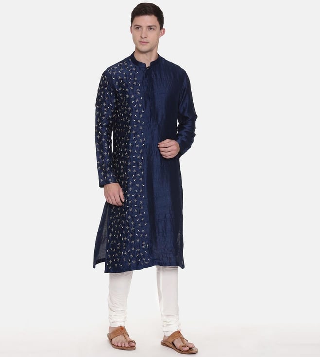 Mayank Modi Blue Silk Embroidered Kurta Set