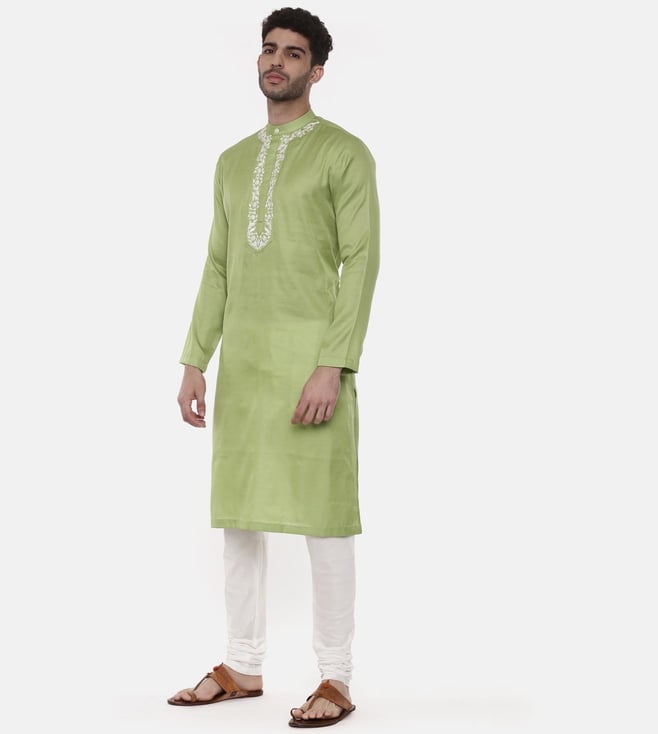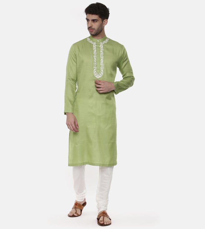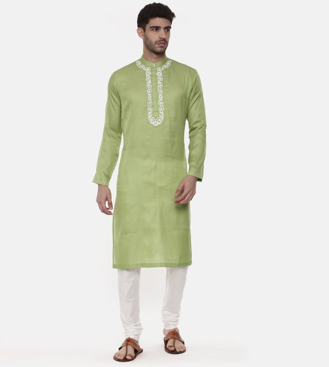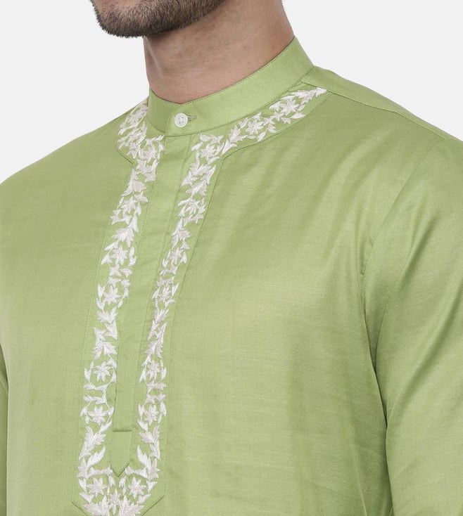 Mayank Modi Green Embroiderd Linen Silk Kurta Set