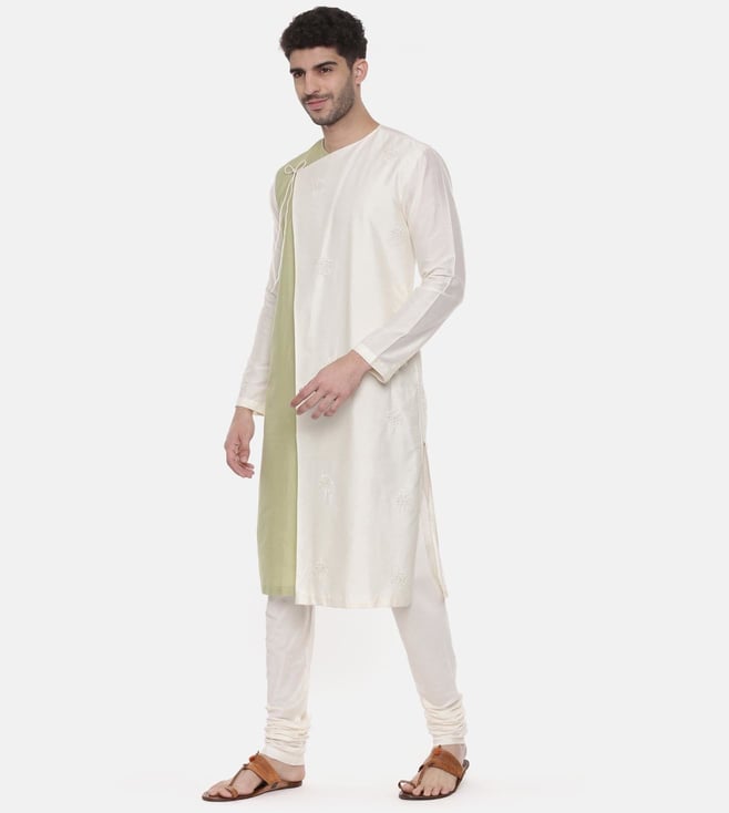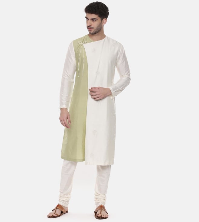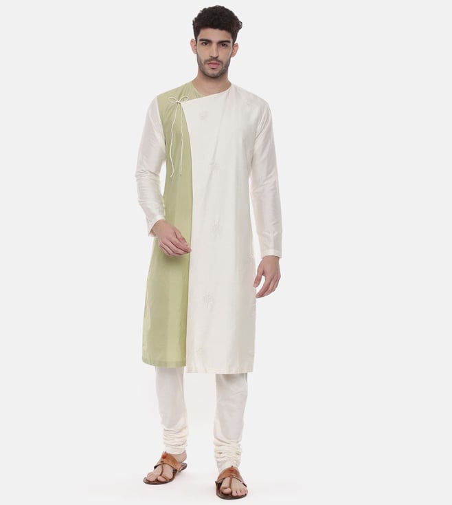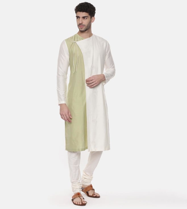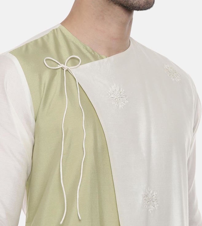 Mayank Modi Green Ivory Wrap Around Silk Kurta Set