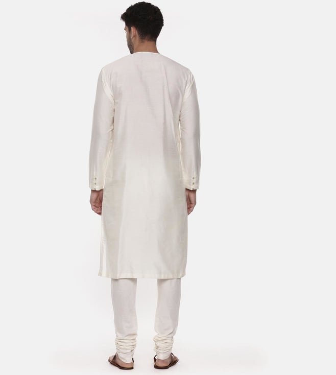 Rekindle your inner style quotient by wearing this cutaway wrap-around kurta from Mayank Modi. Tailored to sartorial perfection from silk and cotton, it assures a soft and soothing touch against the skin. It is featured with subtle hand embroidery. Disclaimer: All other items in the image are only for display purposes and will not be a part of the delivery content. Product colour may slightly vary due to photographic lighting sources. Country Of Origin - India.