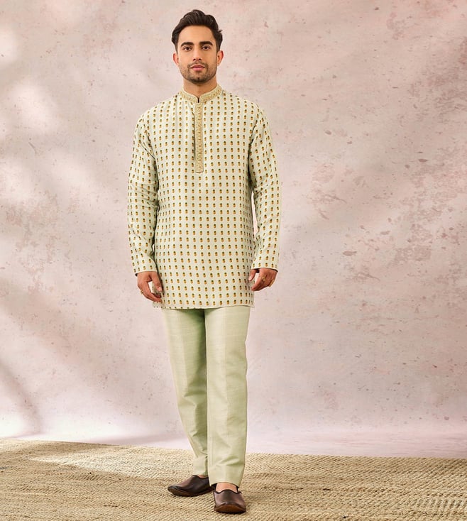 Mint Green Waistcoat and The Pintucked Yoke Short Kurta and Pant