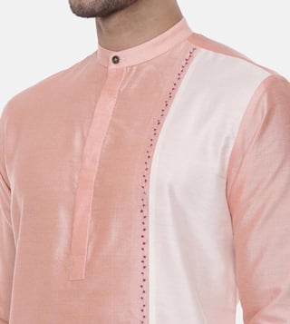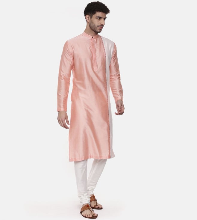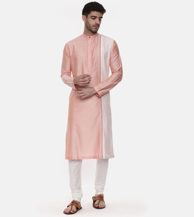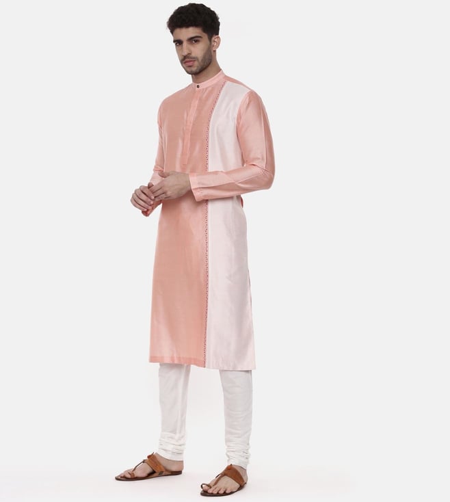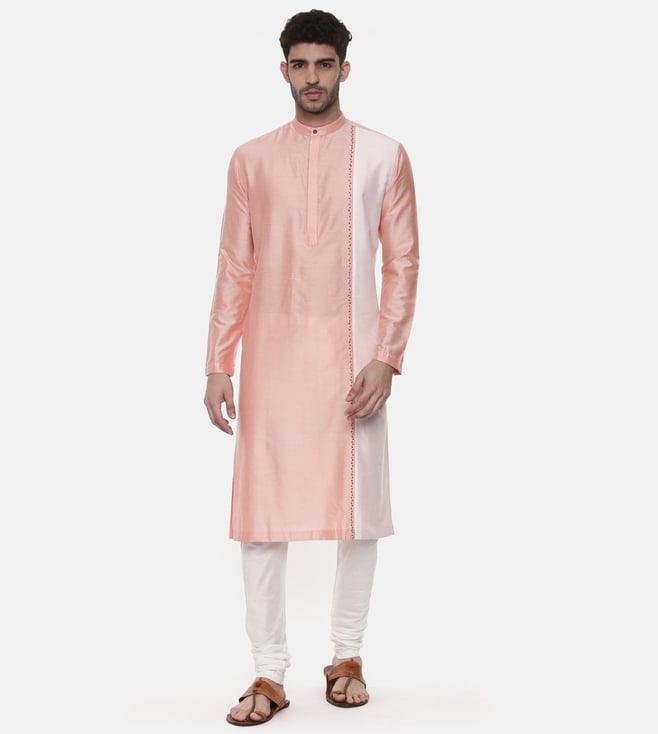 Mayank Modi Pink Ivory Embroidered Silk Kurta Set