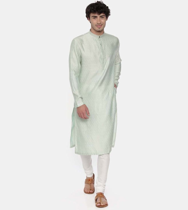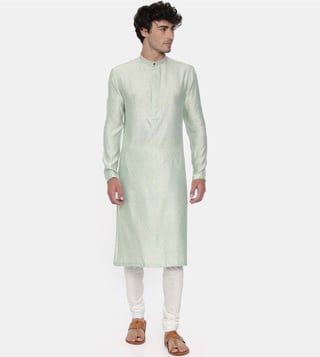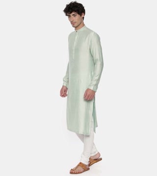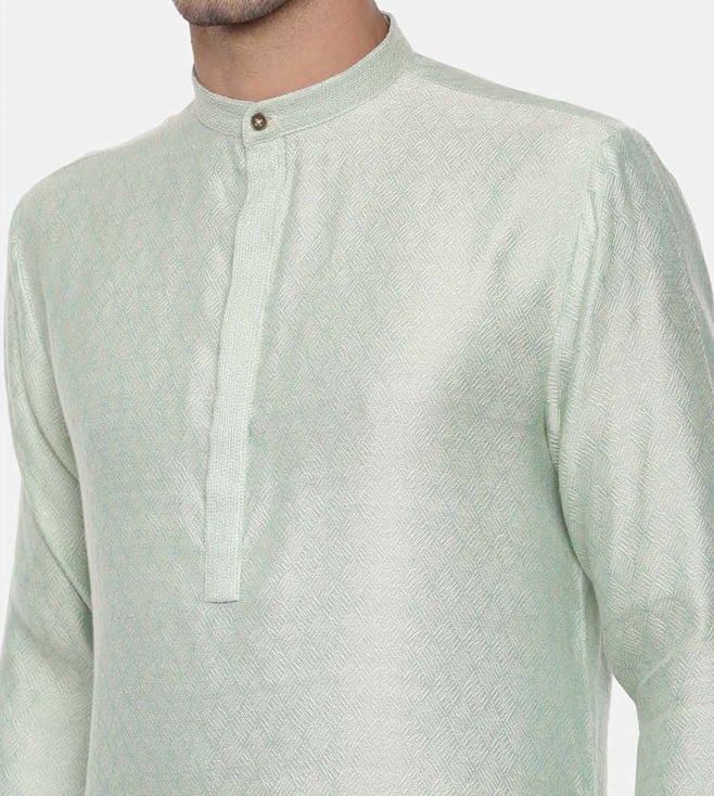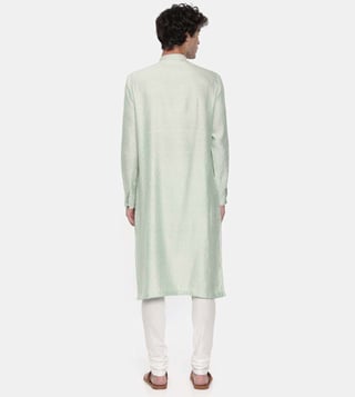 Hit the roads in style by wearing this kurta and pant set from Mayank Modi. Tailored to sartorial perfection from silk jacquard, it assures a soft and soothing touch against the skin. The mandarin collar augments its design. Exuding full sleeves, it is sure to fetch you compliments from all. The textured pattern makes it a wardrobe classic. Country of Origin - India. Disclaimer: Product colour may slightly vary due to photographic lighting sources.