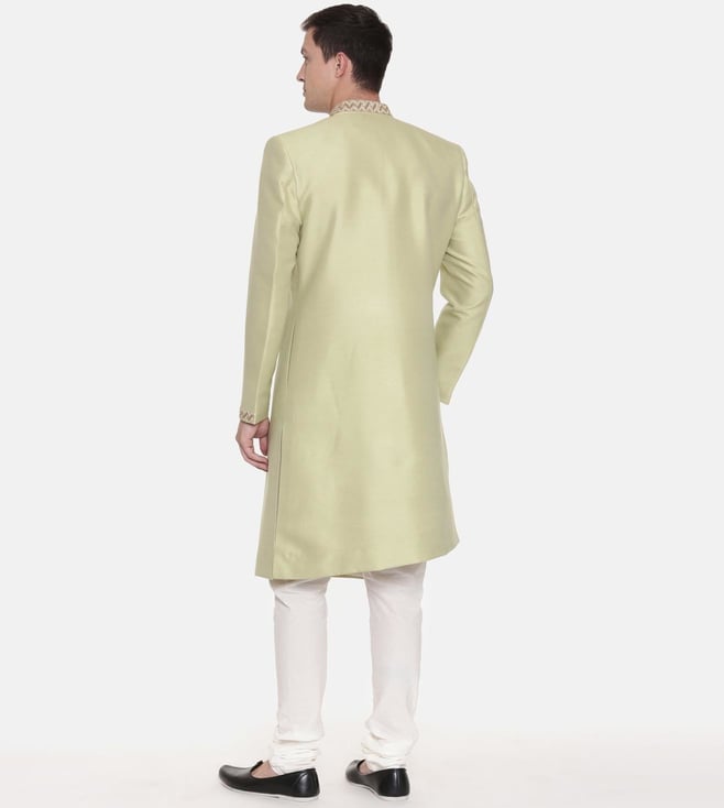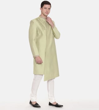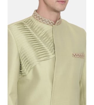 Mayank Modi Pista Green Silk Pleated Sherwani