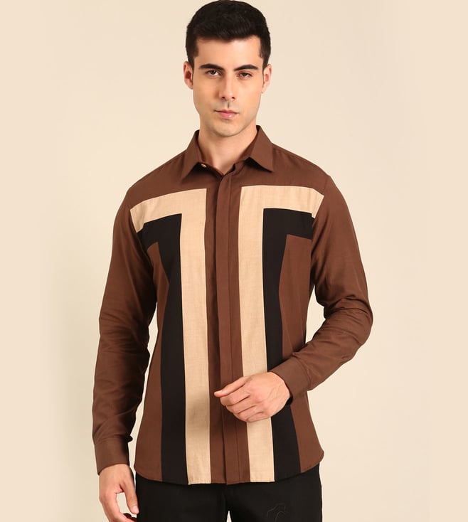 Brown-Beige-Black Malai Cotton Regular Fit Shirt